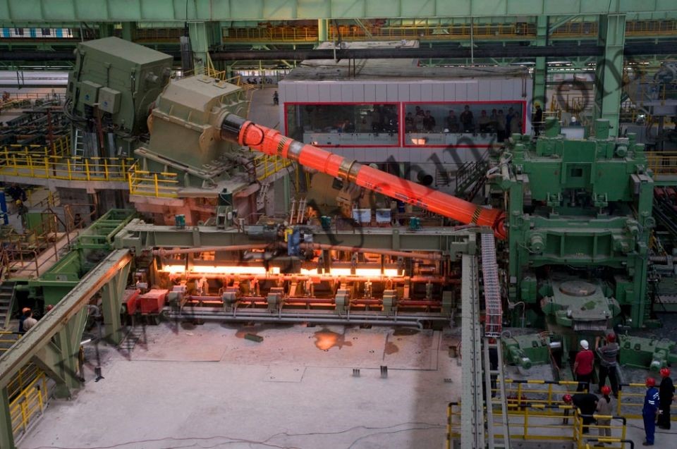 Round bars → Reheating furnace → Piercer → Rolling mill → Extractor → Sizing (reducing) → Cooling → Hollow billet→ Straightening machine → Hydraulic testing (flaw detector) → Marking (labeling) → Warehouse